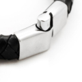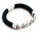 Ανδρικές χειροπέδες με αλυσίδα από χειρουργικό ατσάλι και δέρμα, σε μαύρο και ασημί χρώμα. Ξεχωρίστε δίνοντας ροκ ύφος στην εμφάνισή σας