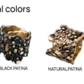 Διατίθεται σε πατίνα μαύρου, χρυσού, χακί και μπορντό. Φοριέται μόνο του ή συνδυάζεται με άλλα κομμάτια της συλλογής για μια ενιαία, φυσικά εμπνευσμένη αισθητική.